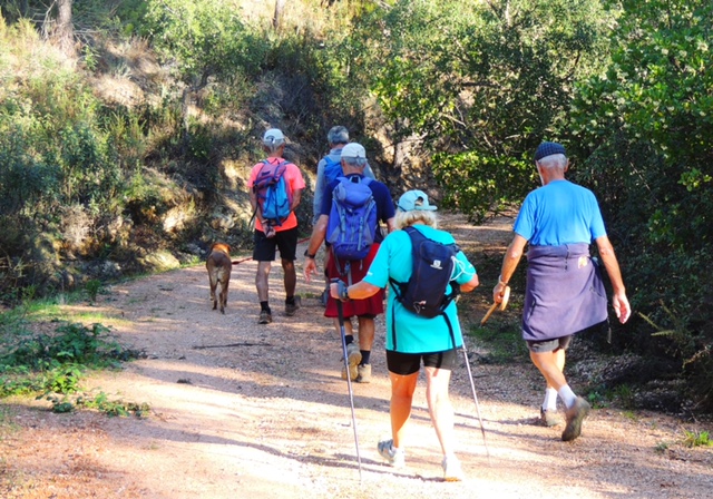 As expected, the group that turned up at Casa Benjamin this week was smaller than recent weeks, but it was even smaller than anticipated. Julie and Tony were missing - Julie not too well - and Tom and Jacqui had navigational difficulties (partly my fault). So, only six departed for the forecast 17k of ups and downs. Those who made it:  Miriam, Ken, Ros, Linda, Martin and meself. Three dogs also made the trip - Bica, Toby and Raffa .